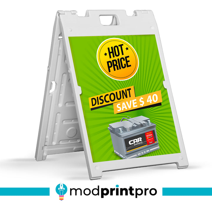 Update curbside promotions for the season with A-Frame Replacement Signs. Perfect for any type of industry, store signs can direct foot traffic to your brick-and-mortar store or promote online offers. They can also be used to display important information within your community. Use these custom sidewalk signs for: